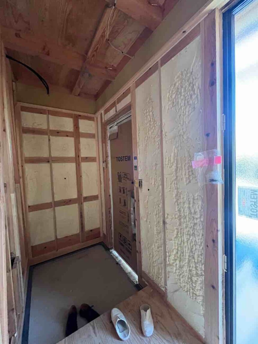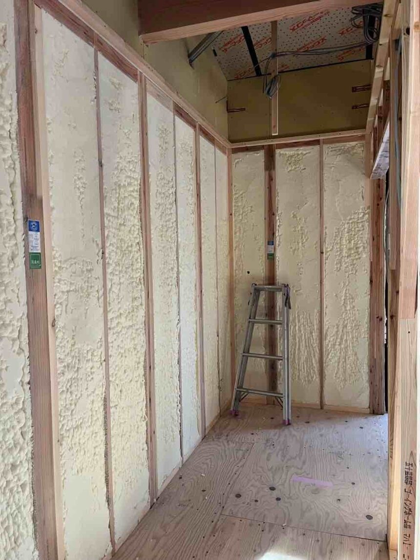 壁の吹付断熱が完了しました(^^