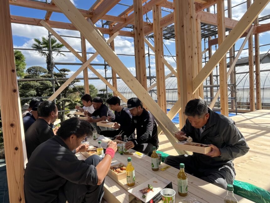 ご家族の皆様に作業の様子を見てもらったり記念撮影もできたりと、とても良い上棟となりました!