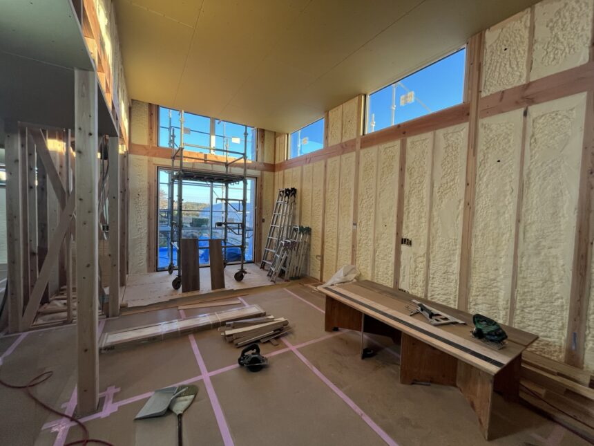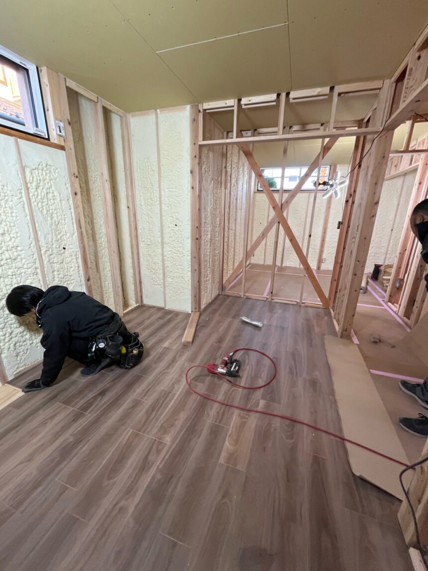 スタッフブログSTAFF BLOG トップスタッフブログ新築工事 2025.11.22新築工事金澤 こんばんは金澤です! 新築現場のご紹介です! 断熱工事も終わり、床のフローリング貼り、ボード張りと順々に施工が行われています! 真剣に作業している大工さん、カッコいいですね~ 現場では施主様とも打合せを行い、図面上では分かりにくい部分も細かく打合せをしていきます! 来週はキッチン、ユニットバスの組立てが行われます!段々と仕上がっていきますよ~ また現場進みましたら紹介していきますのでお楽しみに! ではまた来週! 記事一覧に戻る